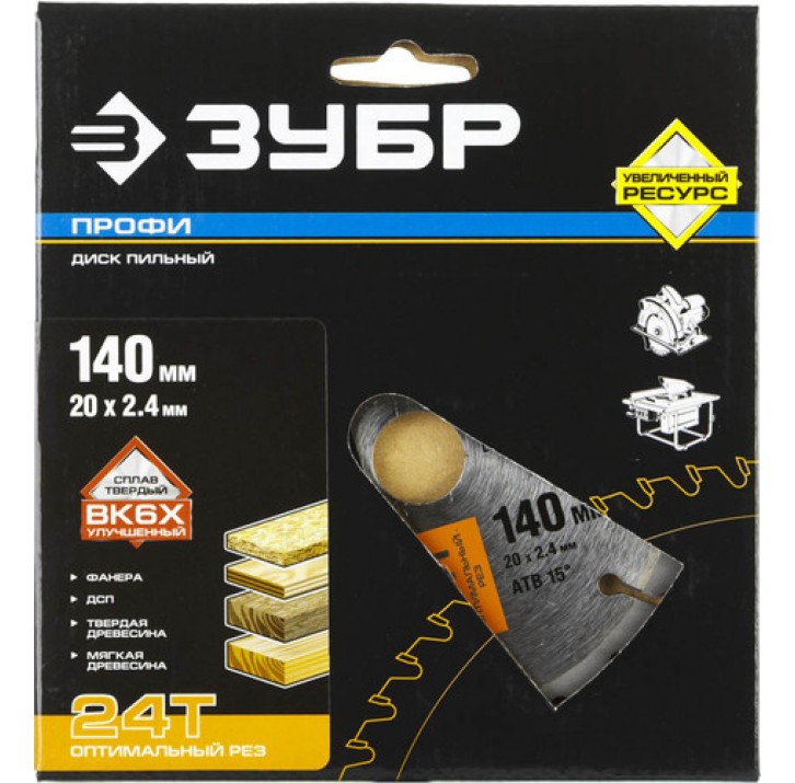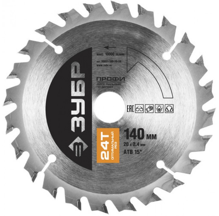 ЗУБР ф 140 x 20 мм, 24T, диск пильный по дереву 36851-140-20-24 Профессионал