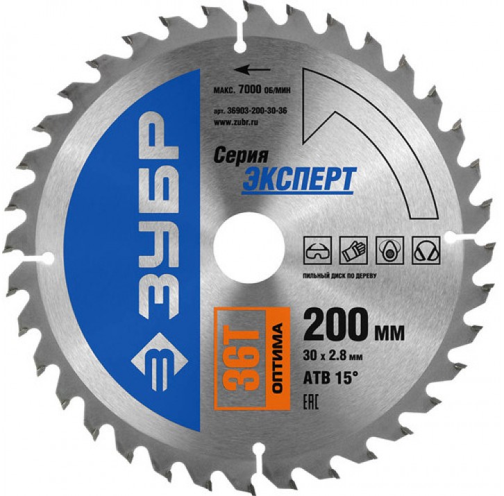 ЗУБР ф 200 x 30 мм, 36T, диск пильный по дереву "Оптимальный рез" 36903-200-30-36