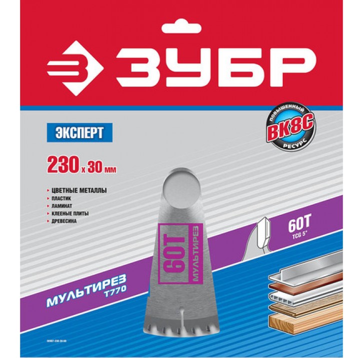 ЗУБР ф 230 х ф 30 мм, 60T, диск пильный по алюминию, ламинату 36907-230-30-60