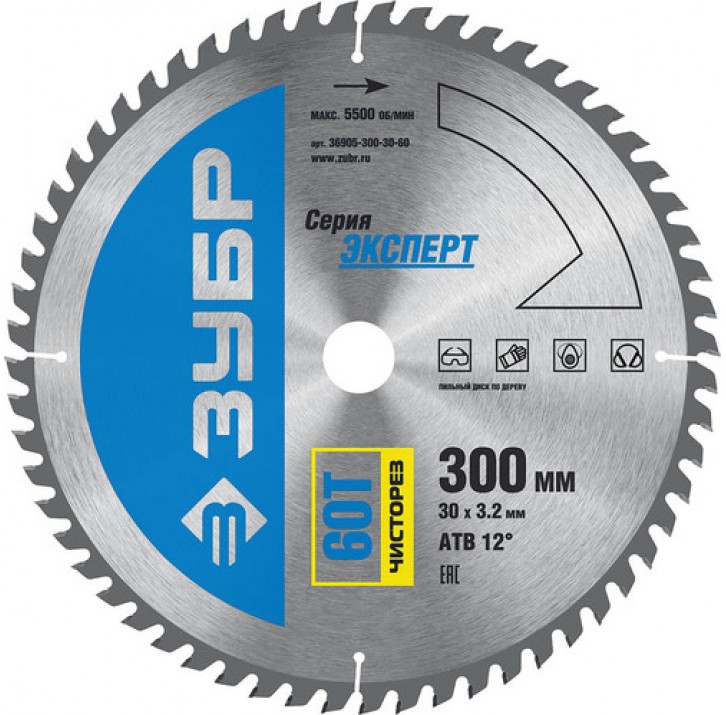 ЗУБР ф 300 x 30 мм, 60T, диск пильный по дереву "Чистый рез" 36905-300-30-60