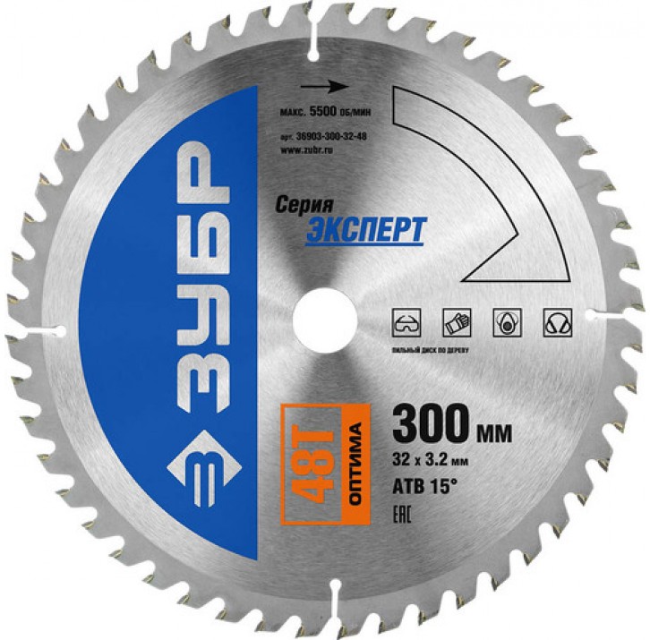 ЗУБР ф 300 x 32 мм, 48T, диск пильный по дереву "Оптимальный рез" 36903-300-32-48