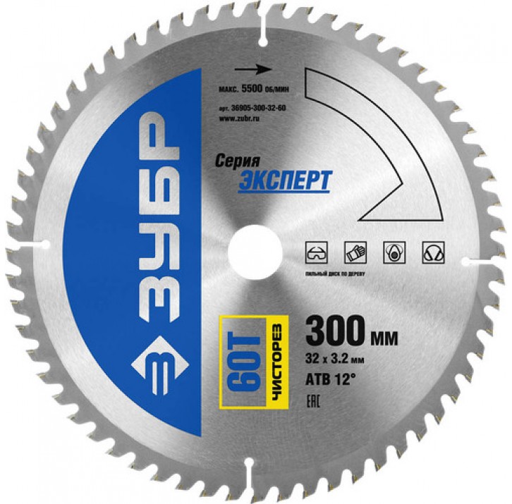 ЗУБР ф 300 x 32 мм, 60T, диск пильный по дереву "Чистый рез" 36905-300-32-60