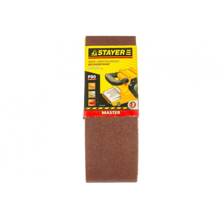STAYER 100х610 мм, P80, лента шлифовальная MASTER, для ЛШМ, 3 шт.