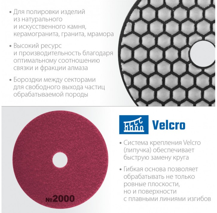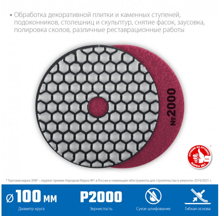 ЗУБР АГШК 100 мм, №2000, сухое шлифование, Алмазный гибкий шлифовальный круг (29868-2000)