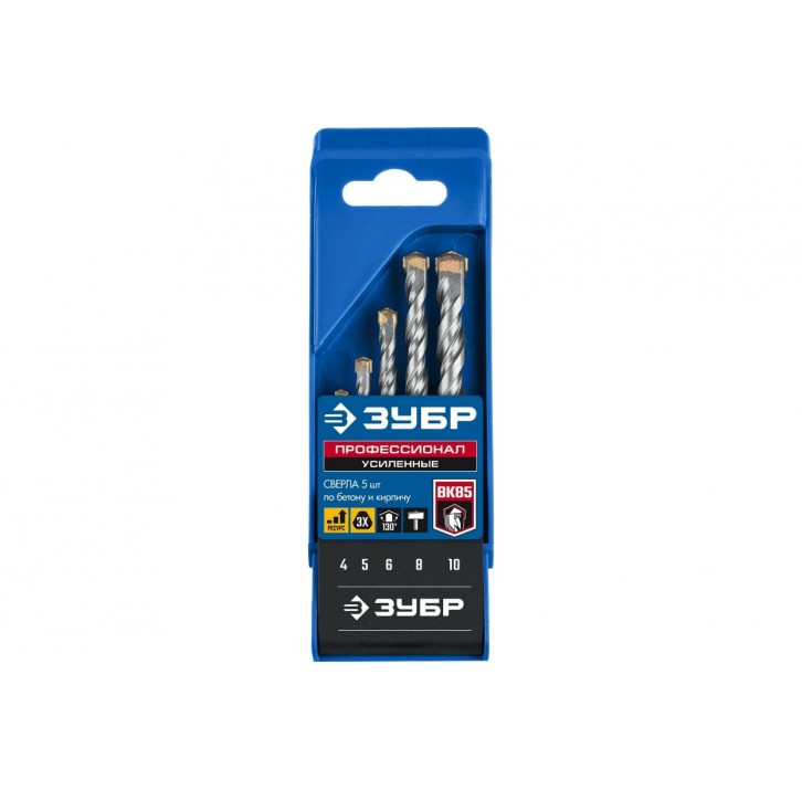 ЗУБР ПРОФЕССИОНАЛ 3 шт: d 6-8-10 мм набор сверл по бетону усиленных, 3-х гранный хвостовик