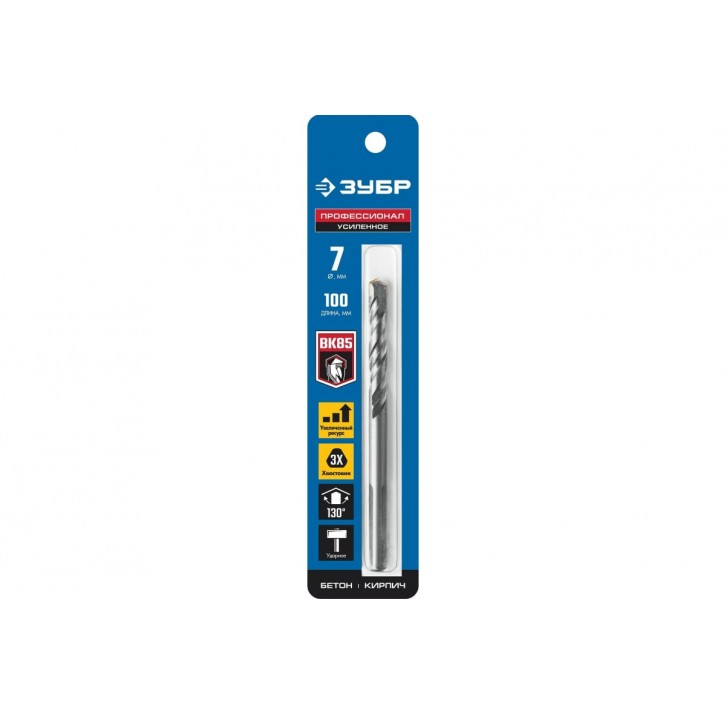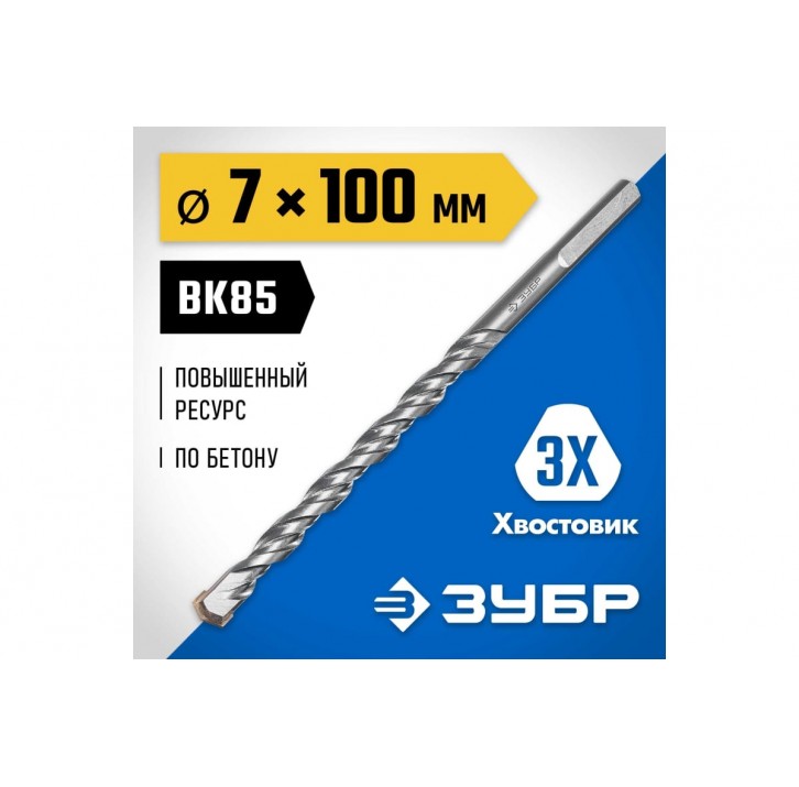 ЗУБР ПРОФЕССИОНАЛ 7 x 100 мм сверло по бетону усиленное, 3-х гранный хвостовик