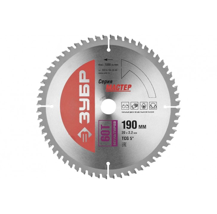 ЗУБР Универсальный рез 190 x 20/16мм 60Т, диск пильный по алюминию