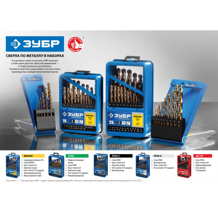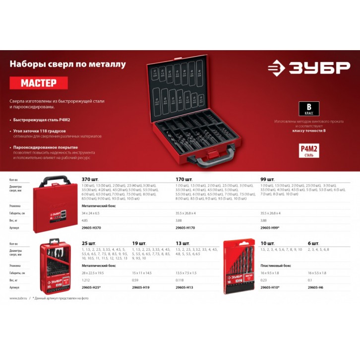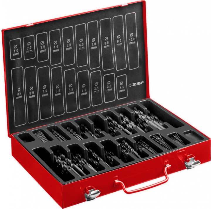 ЗУБР МАСТЕР 370шт(1-10мм), Набор сверл по металлу, сталь Р4М2, класс В, мет.бокс