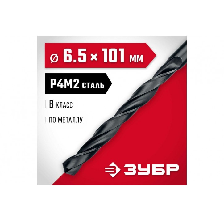 ЗУБР МАСТЕР 6.5х101мм, Сверло по металлу, сталь Р4М2, класс В