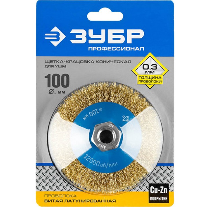 ЗУБР ф 100 мм, проволока 0.3 мм, щетка коническая для УШМ 35267-100_z02 Профессионал