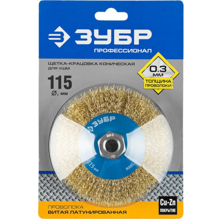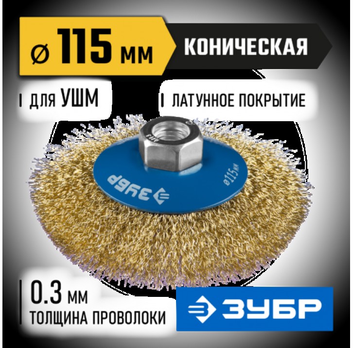 ЗУБР ф 115 мм, проволока 0.3 мм, щетка коническая для УШМ 35267-115_z02 Профессионал