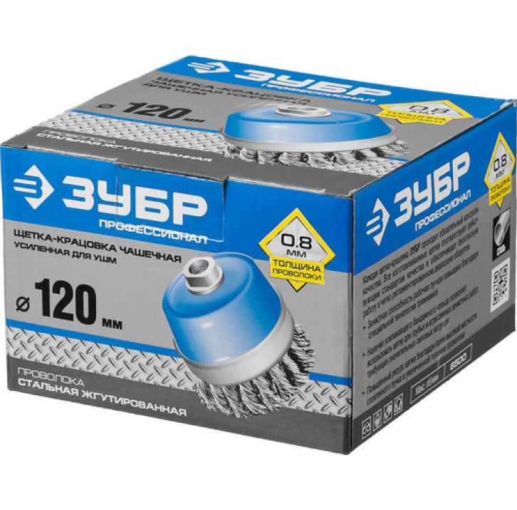 ЗУБР ф 120 мм, проволока 0, 8 мм, щетка чашечная для УШМ 35271-120_z02 Профессионал
