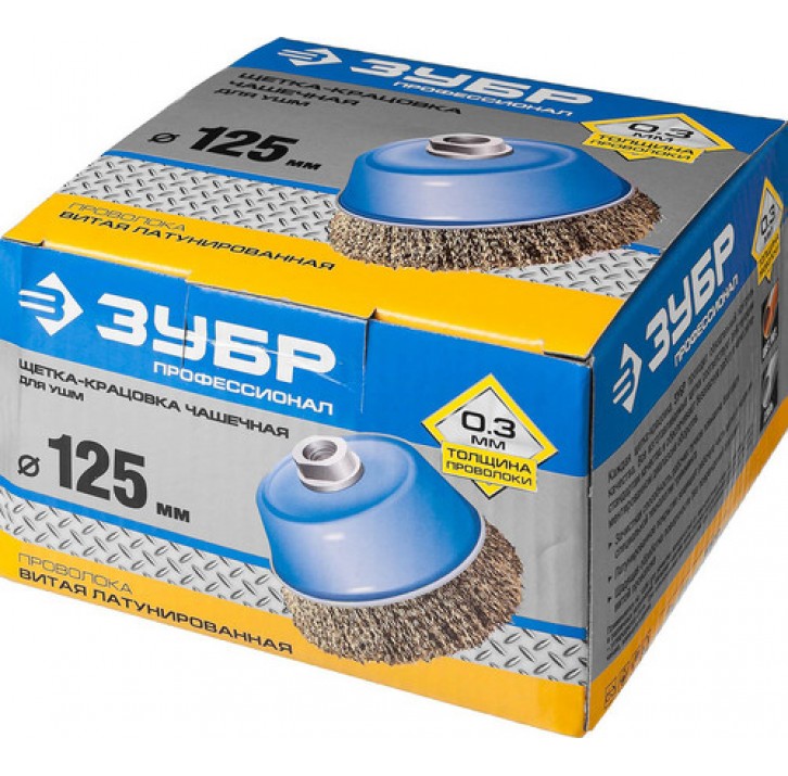 ЗУБР ф 125 мм, проволока 0, 3 мм, щетка чашечная для УШМ 3526-125_z02 Профессионал