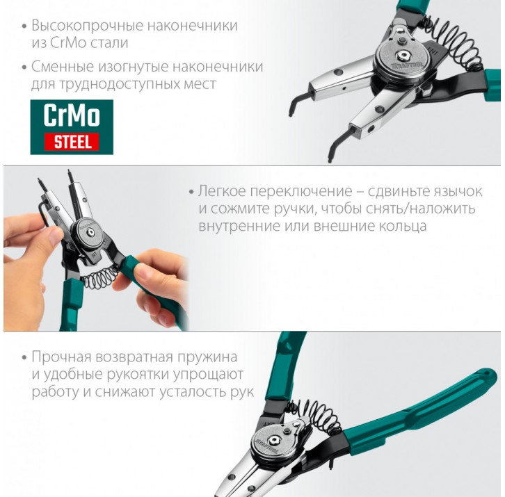 KRAFTOOL Universal 8-in-1 внешний/внутренний, Съемник стопорных колец (22813)