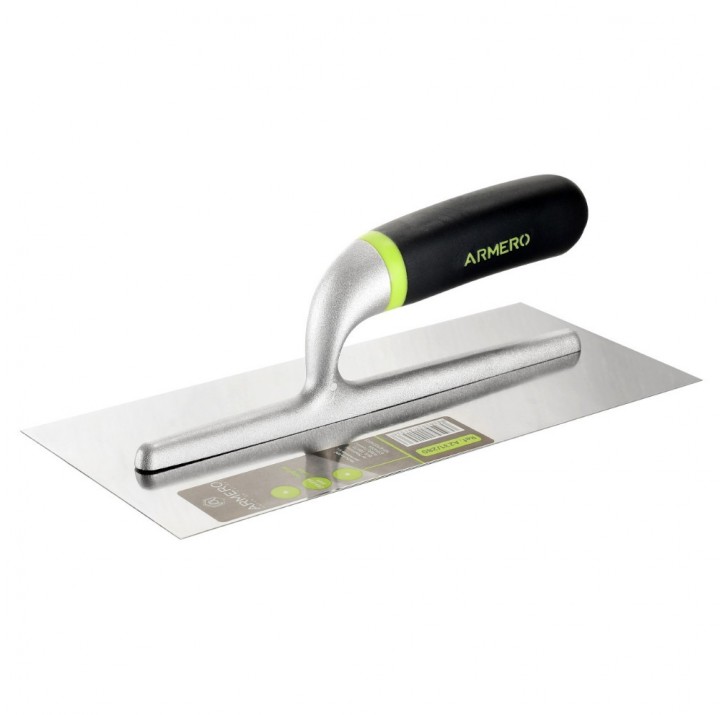Гладилка прямая ARMERO A231/280 с длиной лезвия 280 мм, шириной лезвия 130 мм используется при отделочных работах для равномерного нанесения и разравнивания штукатурного раствора на поверхность. Прочное рабочее полотно толщиной 0.7 мм с зеркальной полировкой изготовлено из нержавеющей стали и имеет длинный алюминиевый армирующий стержень. Усиленная эргономичная двухкомпонентная рукоятка обладает одновременно легкостью и прочностью.