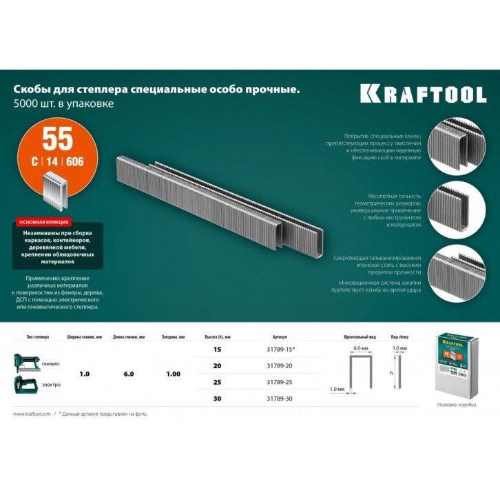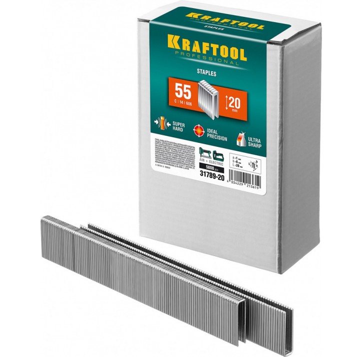 KRAFTOOL тип 18GA (55 / 90 / C) 20 мм, 5000 шт, скобы для степлера (31789-20)