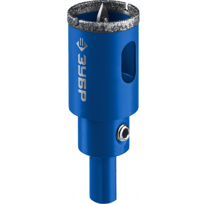 ЗУБР АГК d 40 мм (центр. сверло, трехгр. хвост, Р60), Алмазная коронка, Профессионал (29850-40)