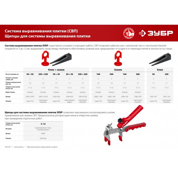 ЗУБР СВП комплект в пакете клин+зажим 50+50шт., Система выравнивания плитки, МАСТЕР (3383-H50)