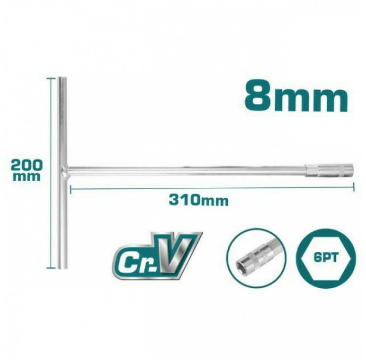 | Наименование | Ключ Т-ОБРАЗНЫЙ торцевой 8mm, длина 310 мм (6 граней) TOTAL |