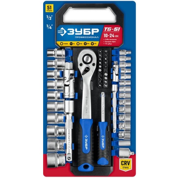 ЗУБР 51 предм., набор торцовых головок ТБ-51 27647-H50 Профессионал