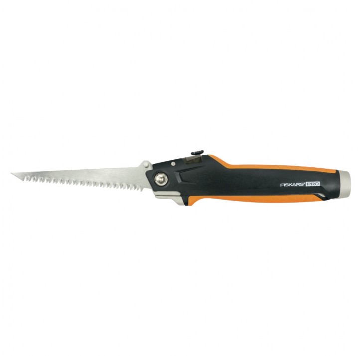 - Два незаменимых у строителей инструмента в одном: пила и нож для резки гипсокартона.
