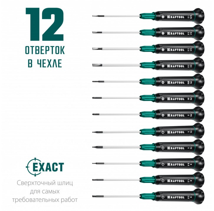 KRAFTOOL Precision 12 для точных работ 12 предм., Набор отверток (25689)