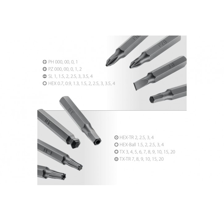 | Тип наконечника | Torx (T, Tx)/Phillips (PH)/Slotted (SL)/Pozidriv (PZ)/Шестигранник (HEX, SW) |