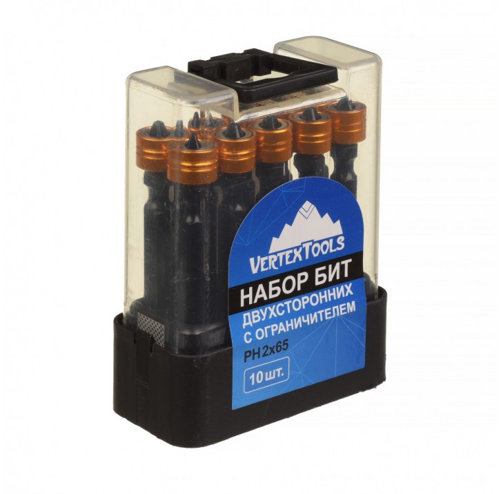 Набор бит двухсторонних с ограничителем РН2*65мм (10шт) VERTEX