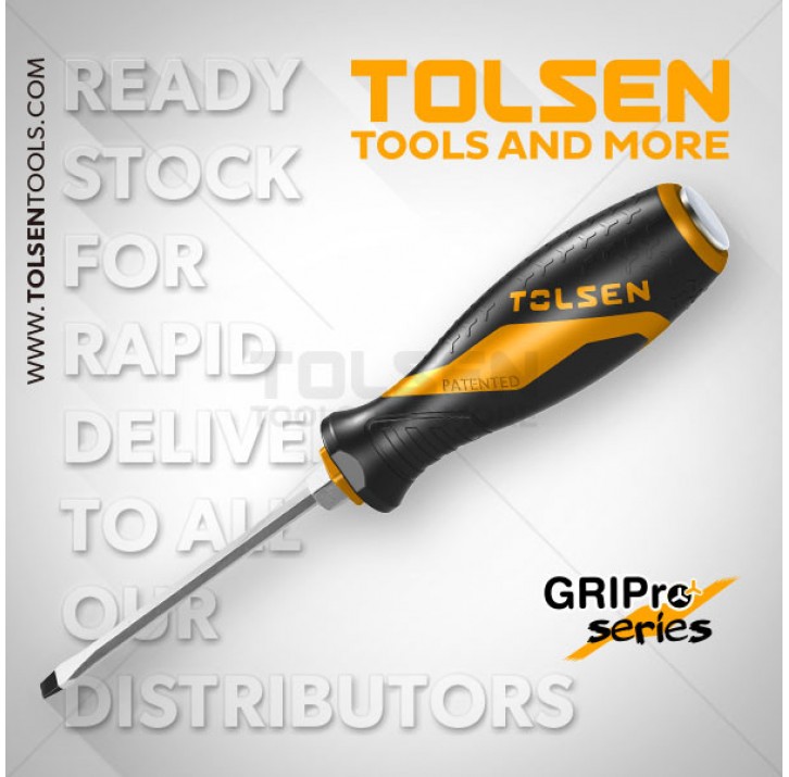 Отвертка ударная с двухкомпонентной рукояткой SL 1, 6*10*200 мм TOLSEN (12/36шт)