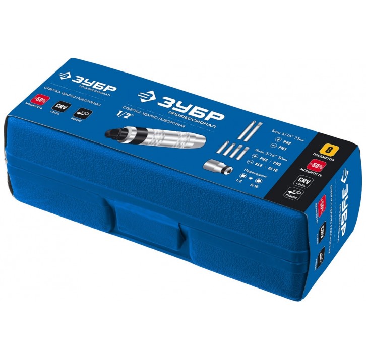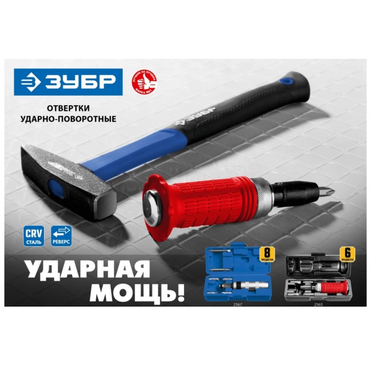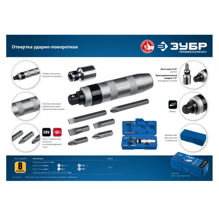 ЗУБР 8 предм., Ударно-поворотная отвертка, Профессионал (2567)