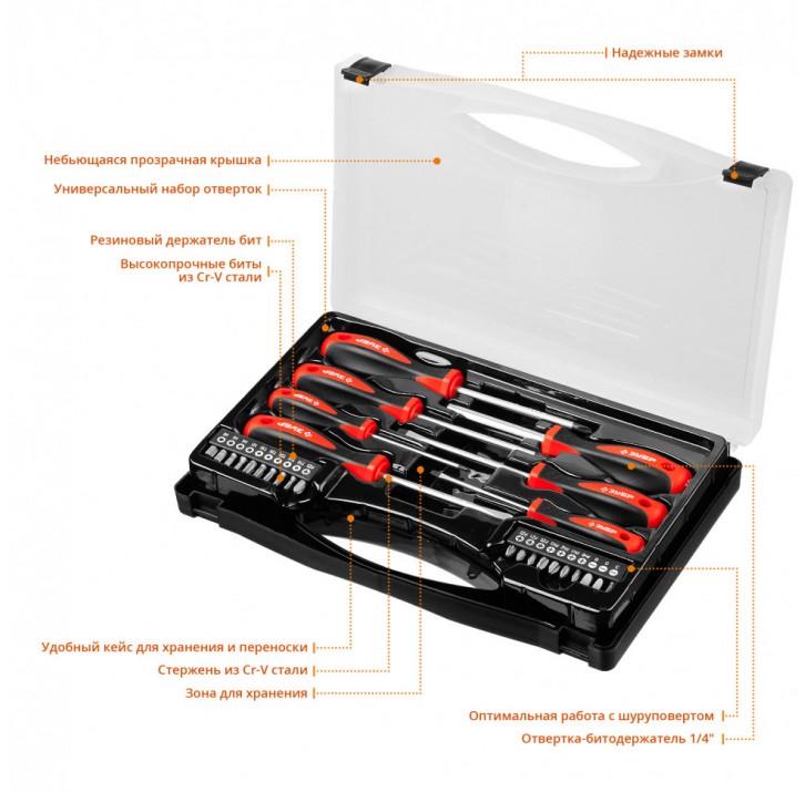 ЗУБР Универсал-27 27 предм., Набор отверток с насадками (25027)