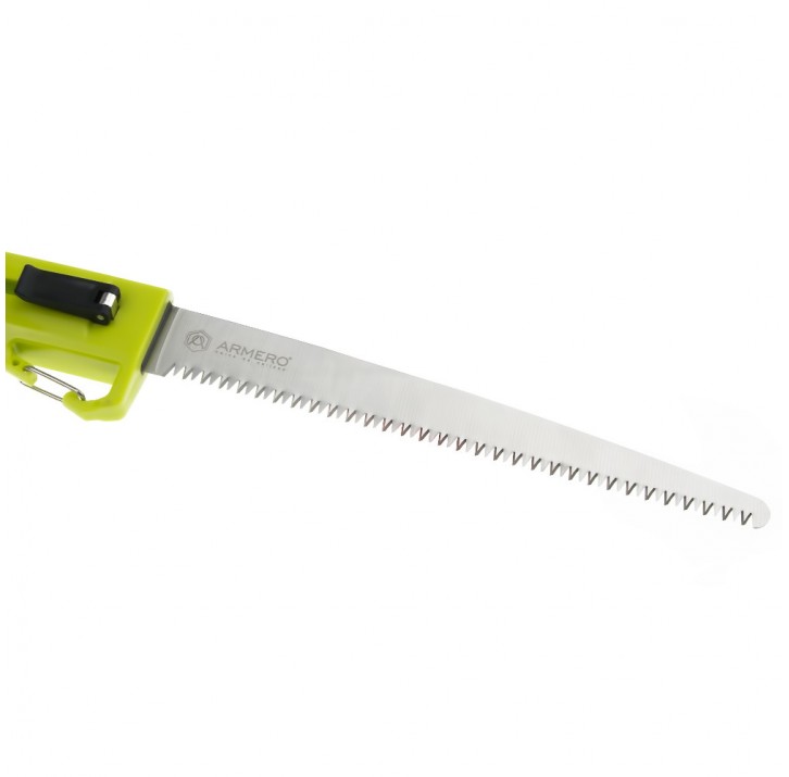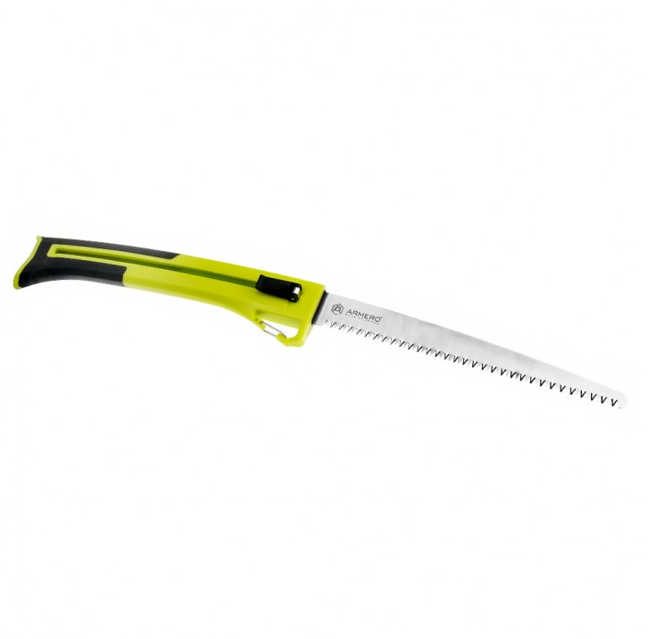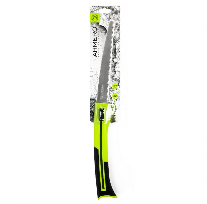 Универсальная пила Armero A541/232 предназначена для использования в туризме, охоте и рыбалке, а также для работ на приусадебном участке. Компактная, с выдвигающимся лезвием - она прекрасно разместится в походных сумках или корзине с инструментом. Эргономичная обрезиненная рукоятка защитит кисть от усталости и позволит без больших трудозатрат провести садовые работы, заготовить хворост для костра или освободить тропу от поваленного дерева. Полотно длиной 250мм оснащено крупным, с трехгранной заточкой зубом, что позволяет пилить древесину как поперек так и вдоль волокон. Темляк на рукоятке позволит носить пилу на брючном ремне.