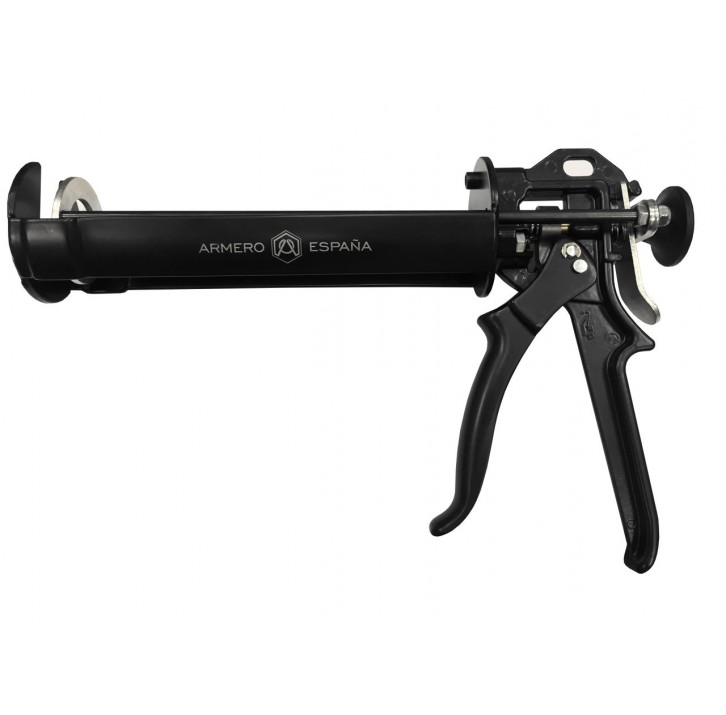 Скелетный пистолет ARMERO A250/012 для герметика, двухкомпонентного клея и химических анкеров высокой степени вязкости предназначен для работы с коаксиальными картриджами объемом 380 и 410 мл. Пистолет имеет пропорцию смешивания 1:1, 2:1, 10:1 и 3.5:1 - 5:1. Корпус модели изготовлен из стали, имеет усиленную раму скелетного типа. Усиленный механизм толкателя имеет соотношение 22:1, обеспечивает максимальное давление поршня 4000N, упрощает дозирование густых материалов высокой степени вязкости.