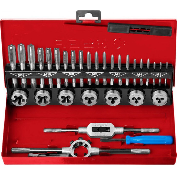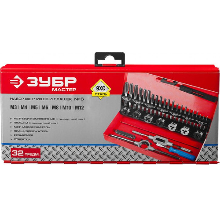 ЗУБР 32 предмета, 9ХС, набор метчиков и плашек 28129-H32_z01