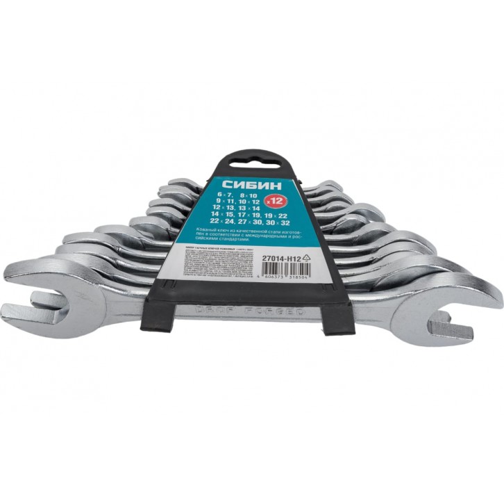 СИБИН 12 шт, 6 - 32 мм, Набор рожковых гаечных ключей (27014-H12)