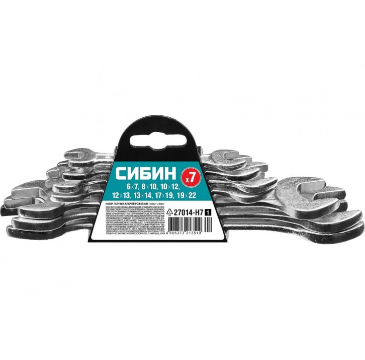 СИБИН 7 шт, 6 - 22 мм, Набор рожковых гаечных ключей (27014-H7)