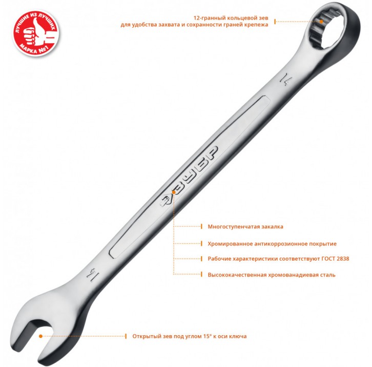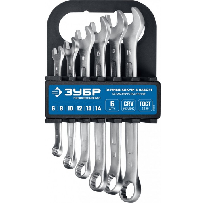 ЗУБР 6 шт, 6 - 14 мм, Набор комбинированных гаечных ключей, Профессионал (27088-H6)
