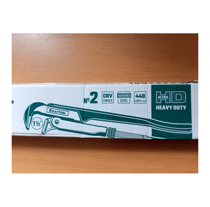 KRAFTOOL PANZER-90, №2, 1.5″, 440 мм, Трубный ключ с прямыми губками (2734-15)
