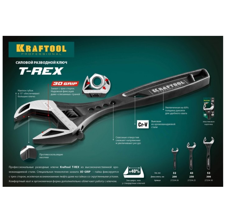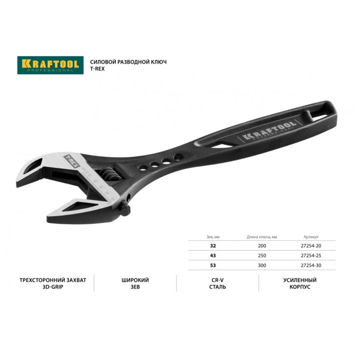KRAFTOOL T-REX, 300 / 53 мм, Силовой разводной ключ (27254-30)