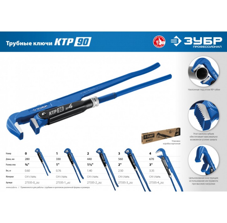 ЗУБР КТР-90, №3, 2″, 560 мм, Трубный ключ, Профессионал (27335-3)