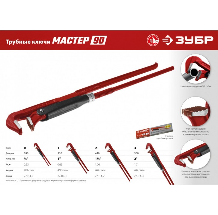 ЗУБР Мастер-90, №3, 2″, 560 мм, Трубный ключ с прямыми губками (27314-3)