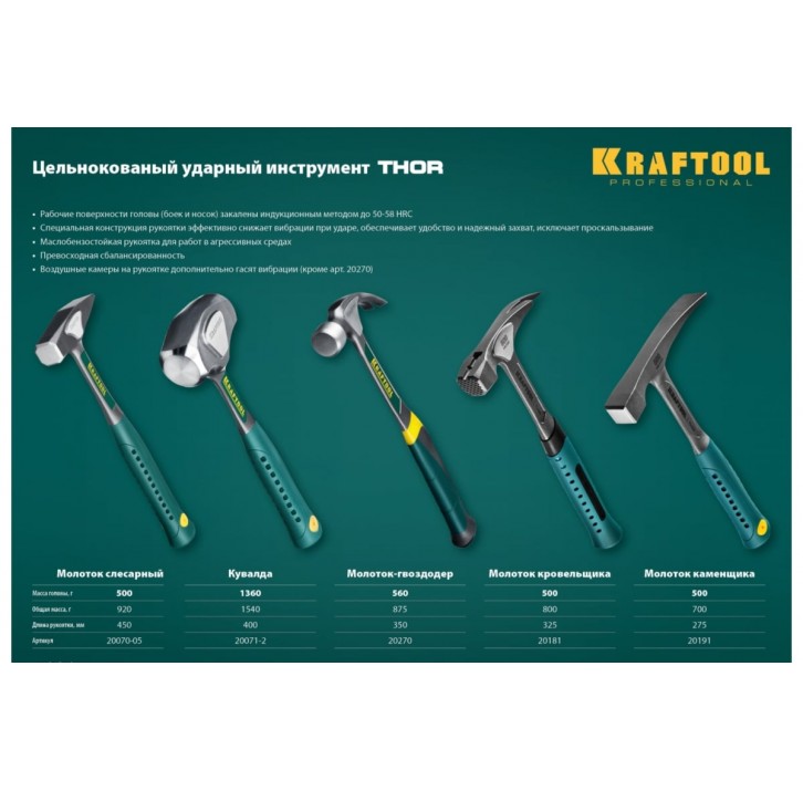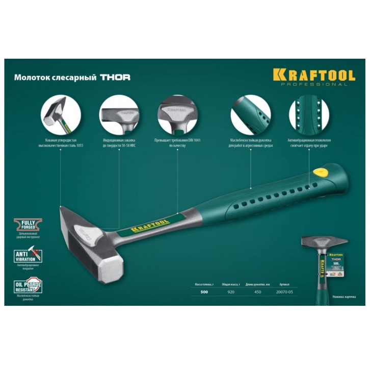 KRAFTOOL Thor 500 г, Цельнокованый слесарный молоток (20070-05)