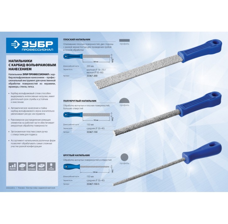 ЗУБР 150 мм, Полукруглый напильник с карбидом вольфрама, Профессионал (33367-150)