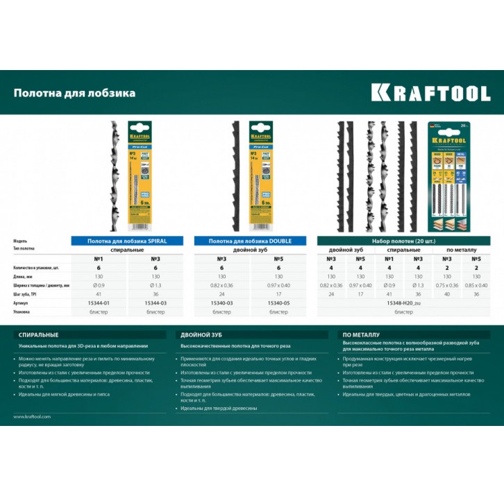 KRAFTOOL Pro Cut 130 мм, 6 шт, Спиральные полотна для лобзика (15344-01)
