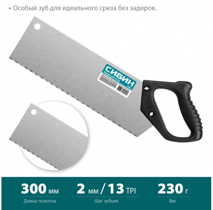 СИБИН 300 мм, шаг 2 мм, Компактная ножовка для стусла (15069)