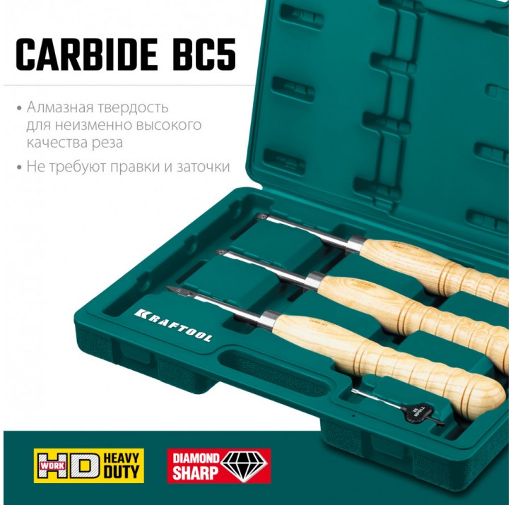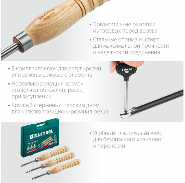 KRAFTOOL Precision-3 3 предм., Набор ручных резцов по дереву (18369)