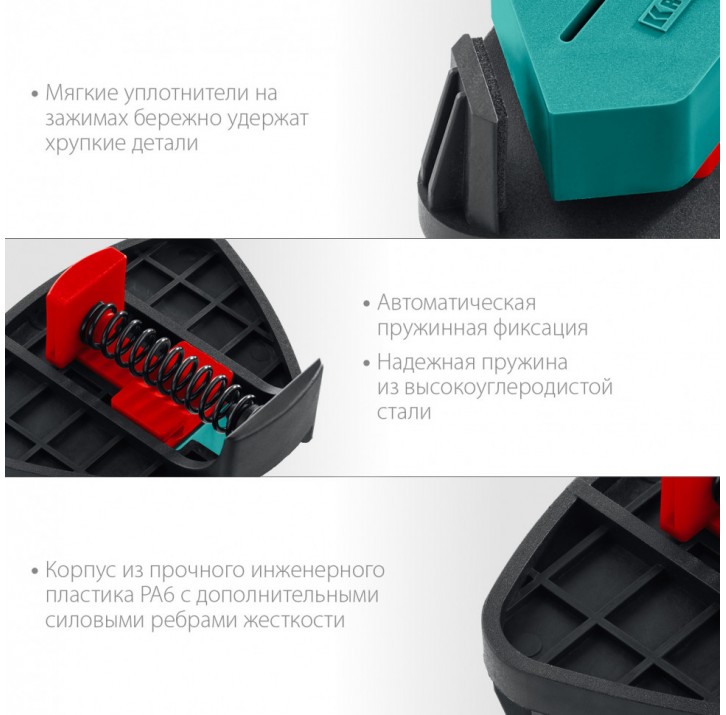 KRAFTOOL CCS два диапазона зажима 10-22 / 22-40 мм, 2шт, Пружинный угловой зажим (32205)