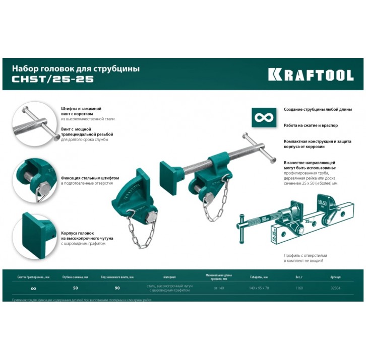 KRAFTOOL CHST/25-25 на профиль 25х50 мм, Набор головок для струбцины (32304)