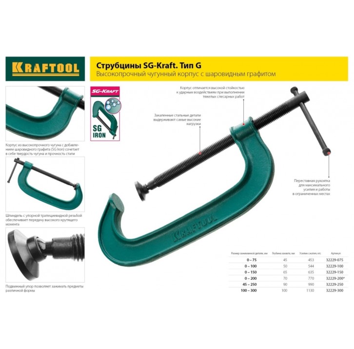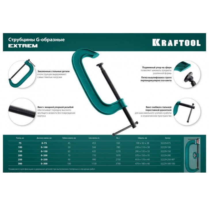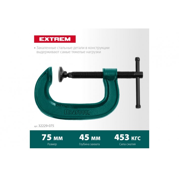 KRAFTOOL EXTREM G-75 75х45 мм, Струбцина G-образная (32229-075)