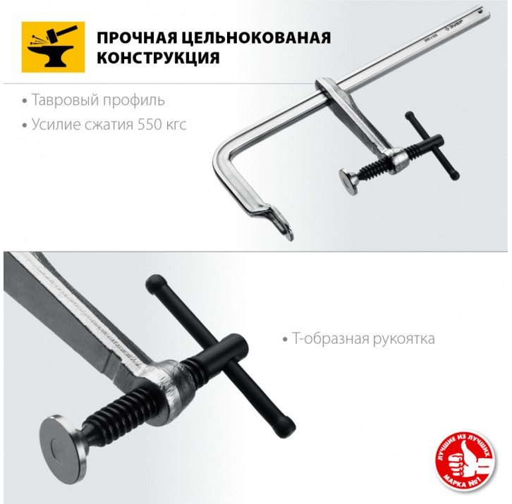 ЗУБР КС-300/120 F 300х120 мм, Цельнокованая струбцина (32157-120-300)